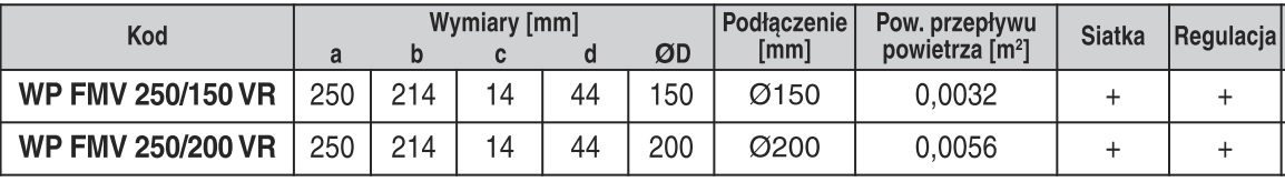 Kratka nawiewno-wywiewna WP FMV 250/150 VR