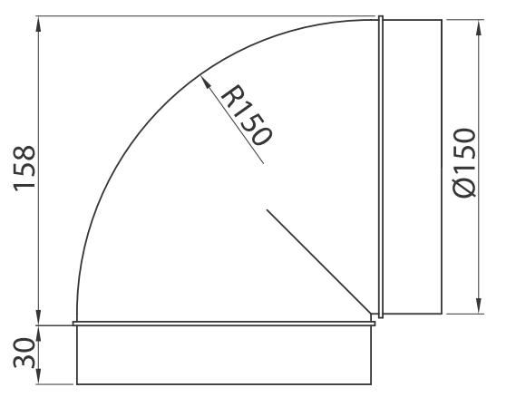 Kolano z tworzywa sztucznego do łączenia rur fi 150mm pod kątem 90 stopni.