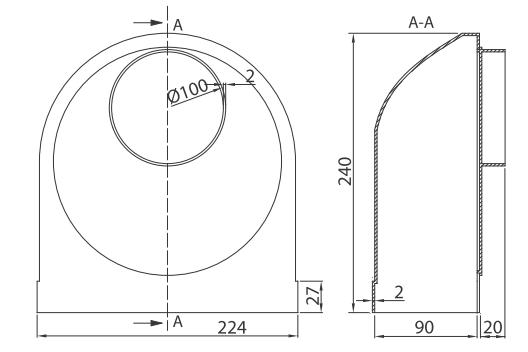 Element ten to kolanko 90 stopni łącznikowe łączące kanał prostokątny 220x90mm z rurą fi 100mm.