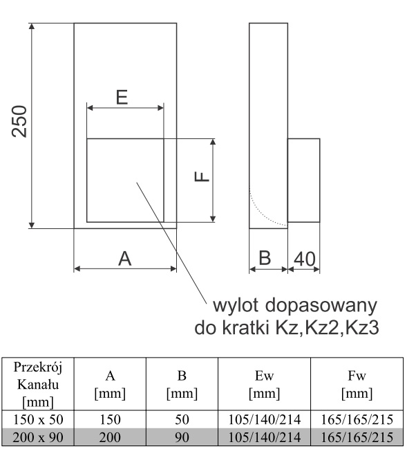 Posiadamy w ofercie pełen asortyment kształtek prostokątnych do systemu 150x50mm oraz kanały w rozmiarze 200x90mm .
