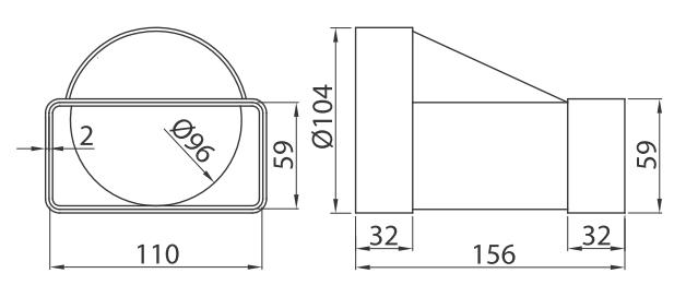 Redukcja z kanału 110x55mm na rurę fi 96.