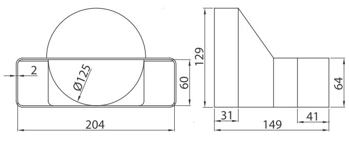 Redukcja z kanału 204x60mm na rurę fi 125.