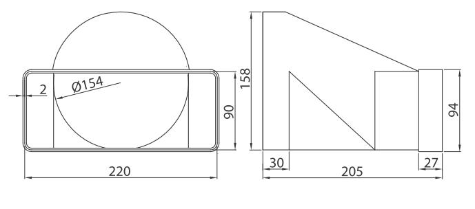 Redukcja z kanału 220x90mm na rurę fi 154.