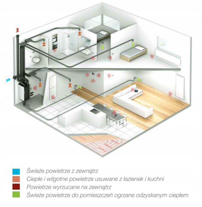 • System zarządzania mocami wentylatorów na podstawie pomiaru strumienia powietrza w kanałach. Celem jest utrzymywanie bilansu, dla zachowania wysokiej efektywności odzysku ciepła i komfortu. Aktywny system zarządzania jest konieczny, aby równoważyć zmienne opory instalacji wynikające z różnic w wilgotności i temperatury powietrza, nierównego zanieczyszczania się filtrów, działania by-passu, wytrącania się wody w wymienniku.