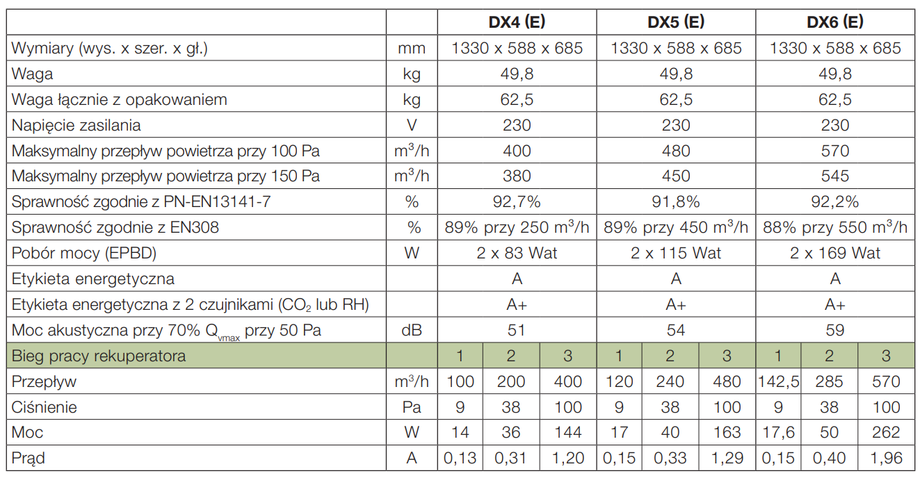 Rekuperator VASCO z odzyskiem ciepła DX 4