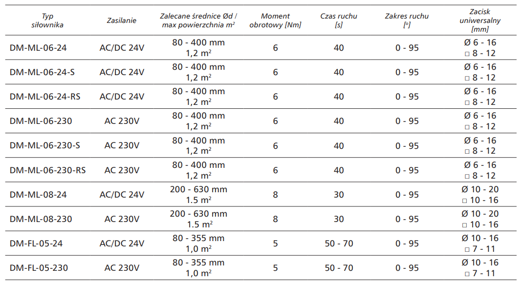 SIŁOWNIK DO PRZEPUSTNIC |6 Nm | 230 V | DM-ML-06-230