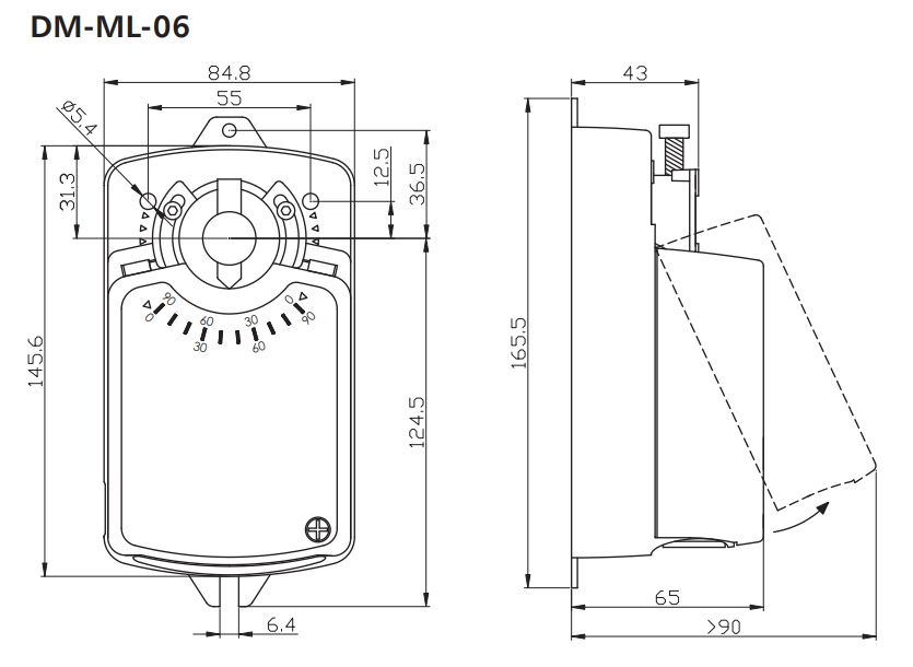 Siłownik DM-ML-06 do regulacji zdalnej przepustnic kanałów wentylacyjnych.