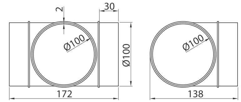 Wszystkie króćce kształtki wchodzą do wewnątrz kanału.
