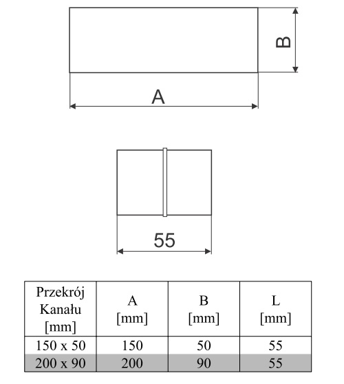 Posiadamy w ofercie pełen asortyment kształtek prostokątnych do systemu 150x50mm oraz kanały w rozmiarze 200x90mm .